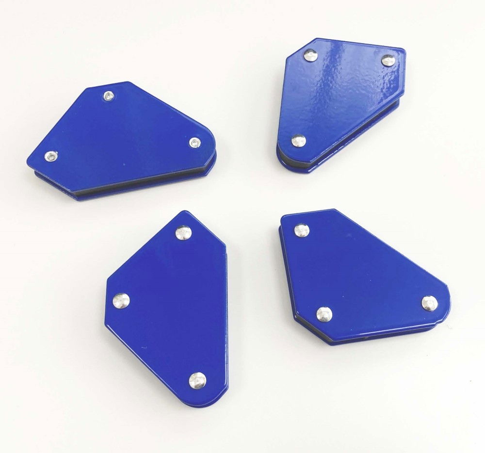 KDP-WH043This 4 piece mini magnetic weld holder set includes four 10 lb magnets, each approximately 60 x 50 x 10 mm in size. The holders support material positioning at 45, 90, or 135 degree angles, allowing for hands-free welding work.