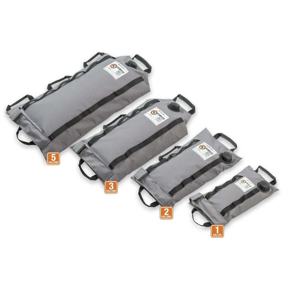 - Available capacities: 1 US gallon (3.8 L), 2 gallon (7.6 L), 3 gallon (11.3 L), 5 gallon (18.9 L)