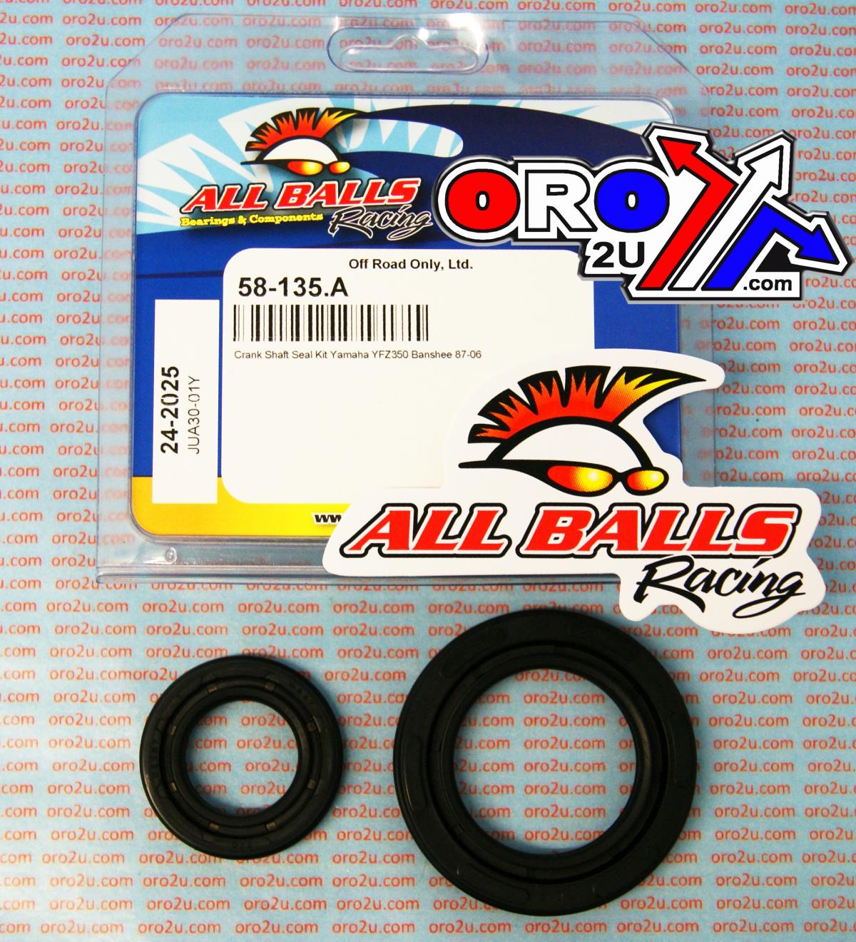 58-135.AThis crankshaft seal kit is designed for Yamaha YFZ350 Banshee models from 1987 to 2009. Manufactured by ALLBALLS under part number 24-2025, the kit includes both PTO and MAG crankshaft seals. Built to meet OEM specifications, the seals feature double lip PTFE construction to ensure reliable sealing and reduced crankshaft pin wear during dry starts.