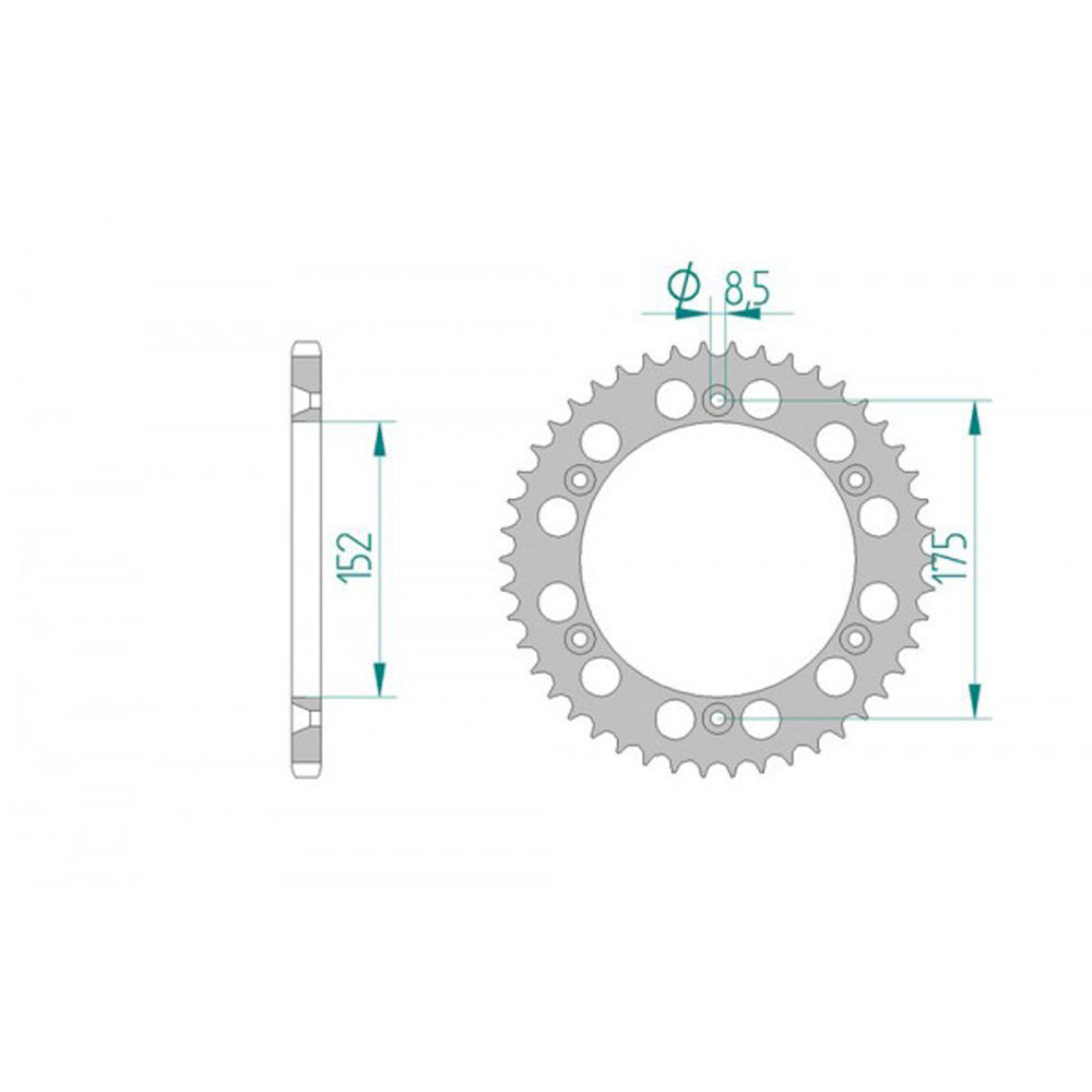 AFAM lightweight aluminium hard anodized grey rear sprocket. Grooves enable self cleaning of mud and sand Fits