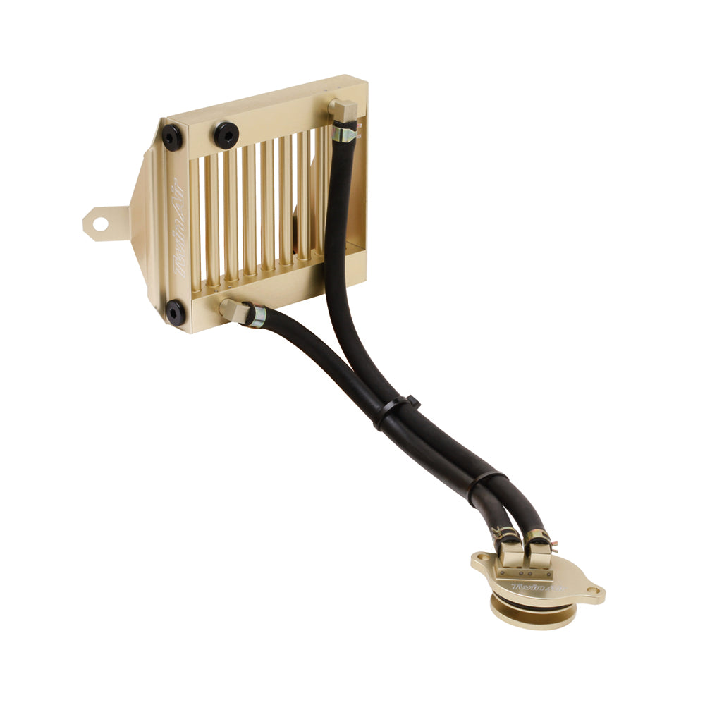 The Twin Air Oil Cooler kit includes everything you need-heat exchanger, mounting hardware, oil filter cap, hoses, clamps and step-by-step instructions.