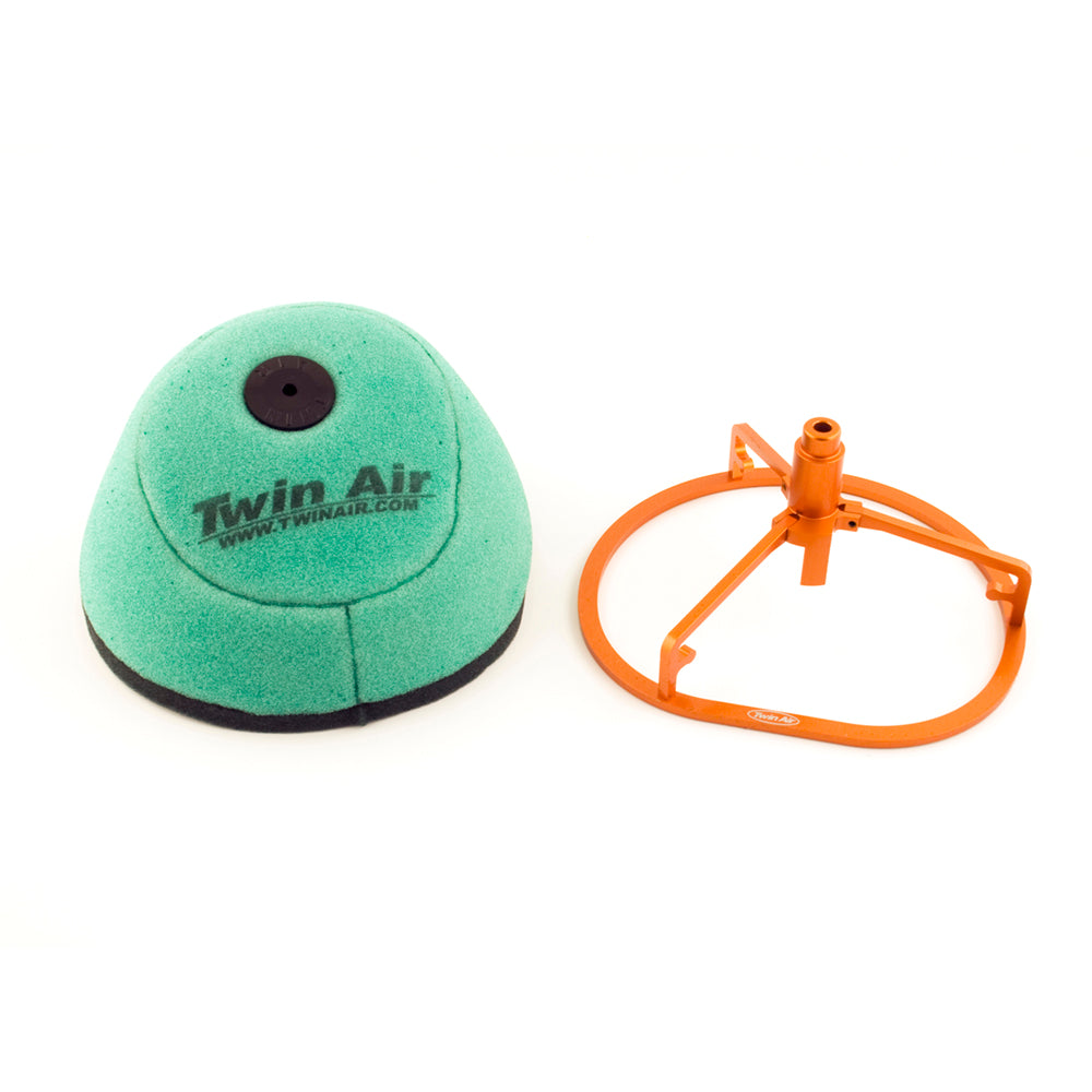 The best filter in the world can't do its job if there are leaks in the seal of the airbox. That's why Twin Air provides a complete line of products to ensure a leak-proof, fool-proof fit. Twin Air's Power Flow kit comes with a rigid, lightweight, billet aluminium cage that provides a tight seal to the airbox and replaces your flimsy plastic stock cage. Includes a Fire-resistant Twin Air Filter.