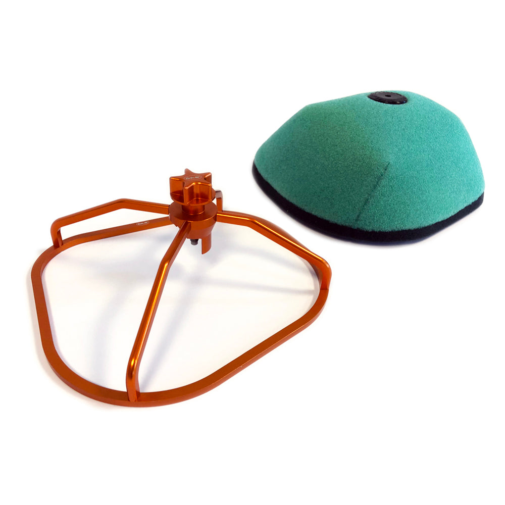 The best filter in the world can't do its job if there are leaks in the seal of the airbox. That's why Twin Air provides a complete line of products to ensure a leak-proof, fool-proof fit. Twin Air's Power Flow kit comes with a rigid, lightweight, billet aluminium cage that provides a tight seal to the airbox and replaces your flimsy plastic stock cage. Includes a Fire-resistant Twin Air Filter. POWERFLOW KIT - 151125C