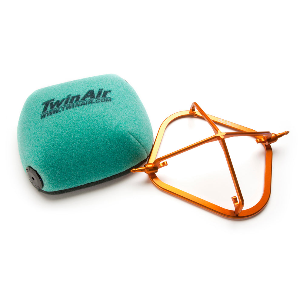 The best filter in the world can't do its job if there are leaks in the seal of the airbox. That's why Twin Air provides a complete line of products to ensure a leak-proof, fool-proof fit. Twin Air's Power Flow kit comes with a rigid, lightweight, billet aluminium cage that provides a tight seal to the airbox and replaces your flimsy plastic stock cage. Includes a Fire-resistant Twin Air Filter.