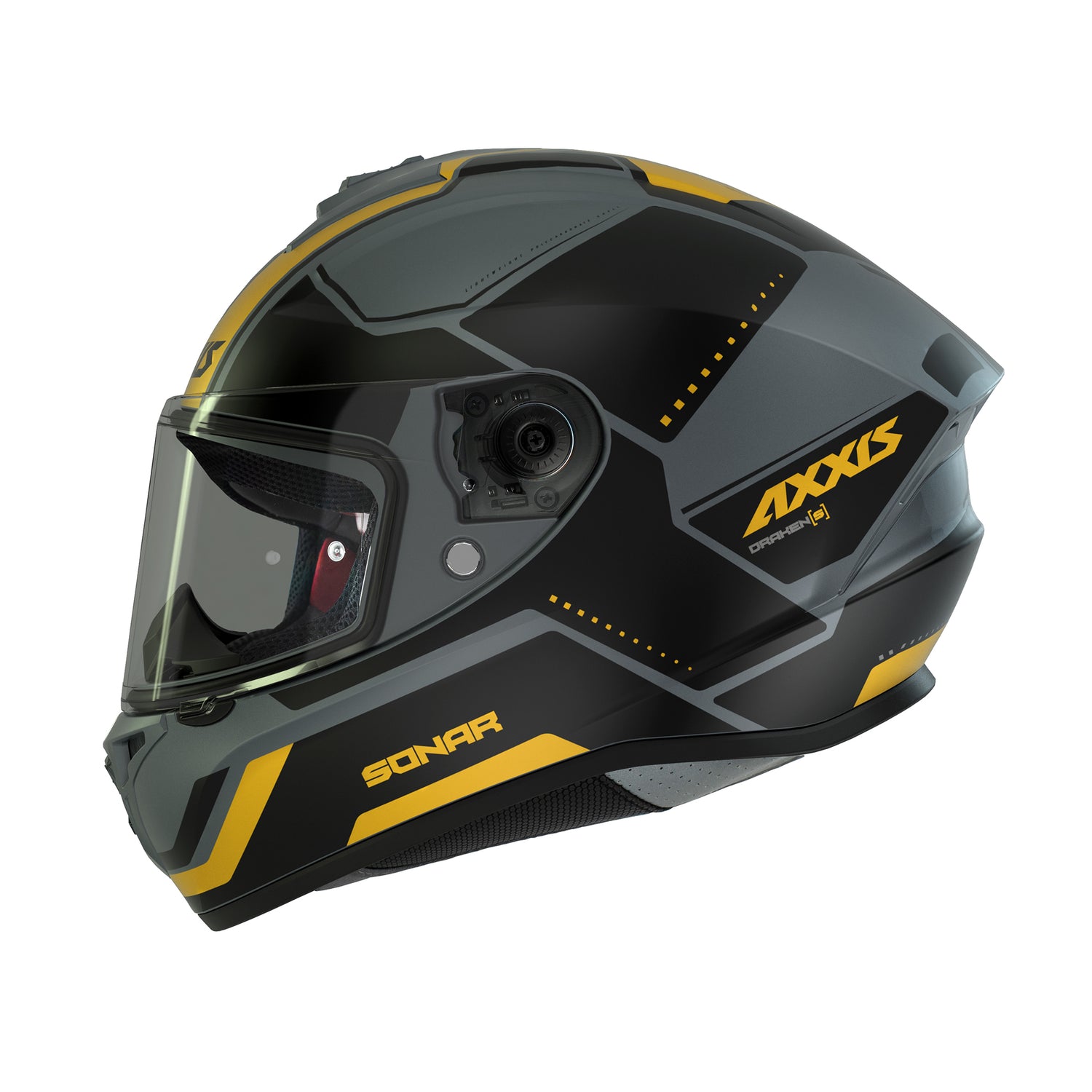 The Axxis Draken helmet has an ECE, DOT injected thermoplastic shell.