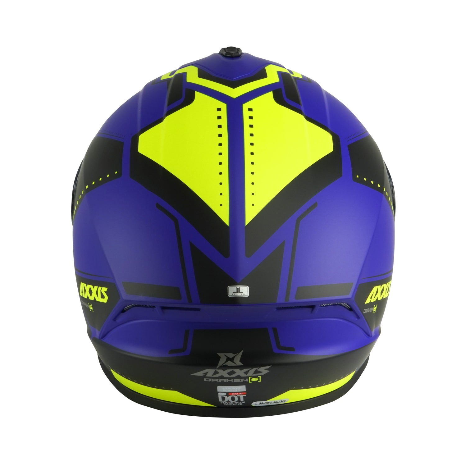 The Axxis Draken helmet has an ECE, DOT injected thermoplastic shell.