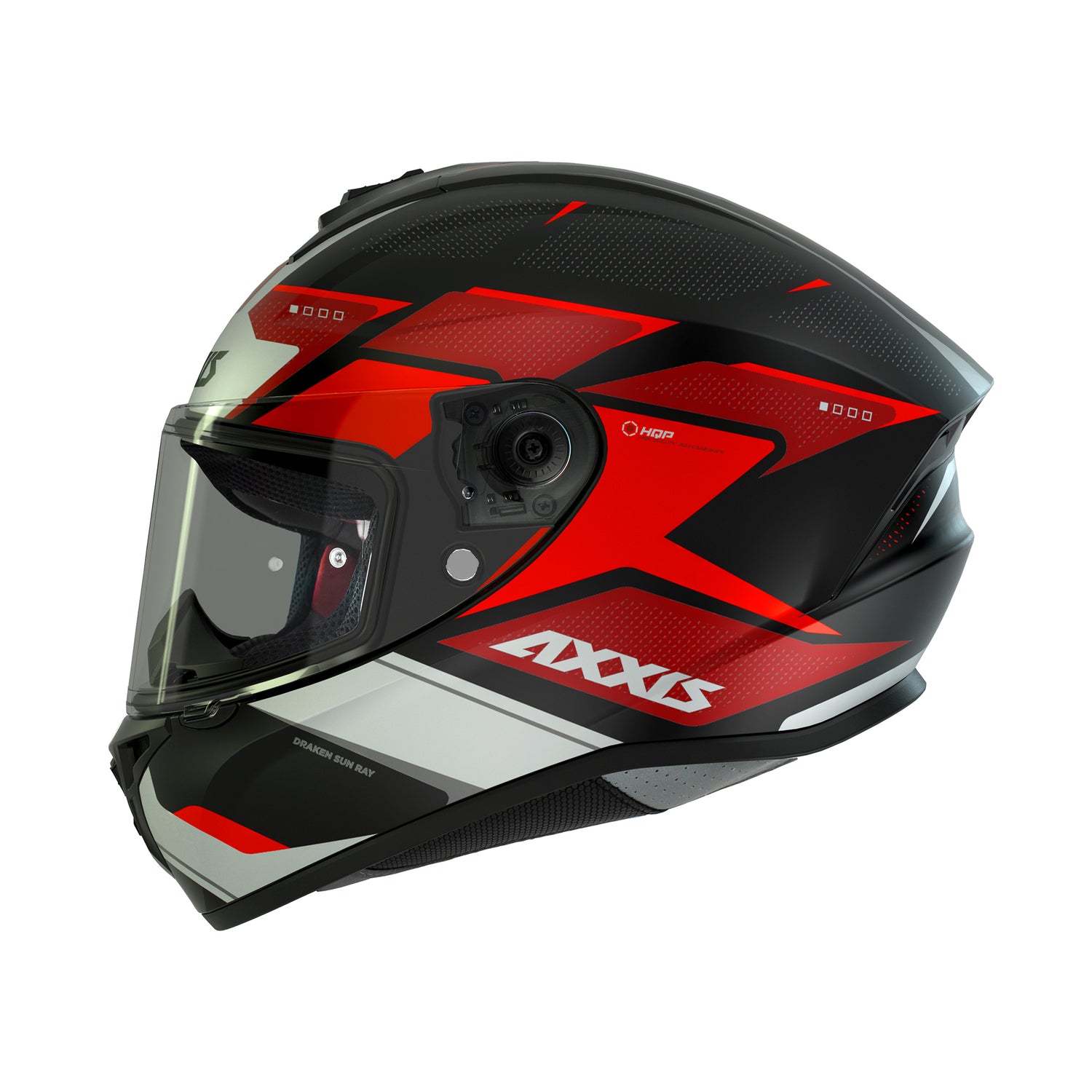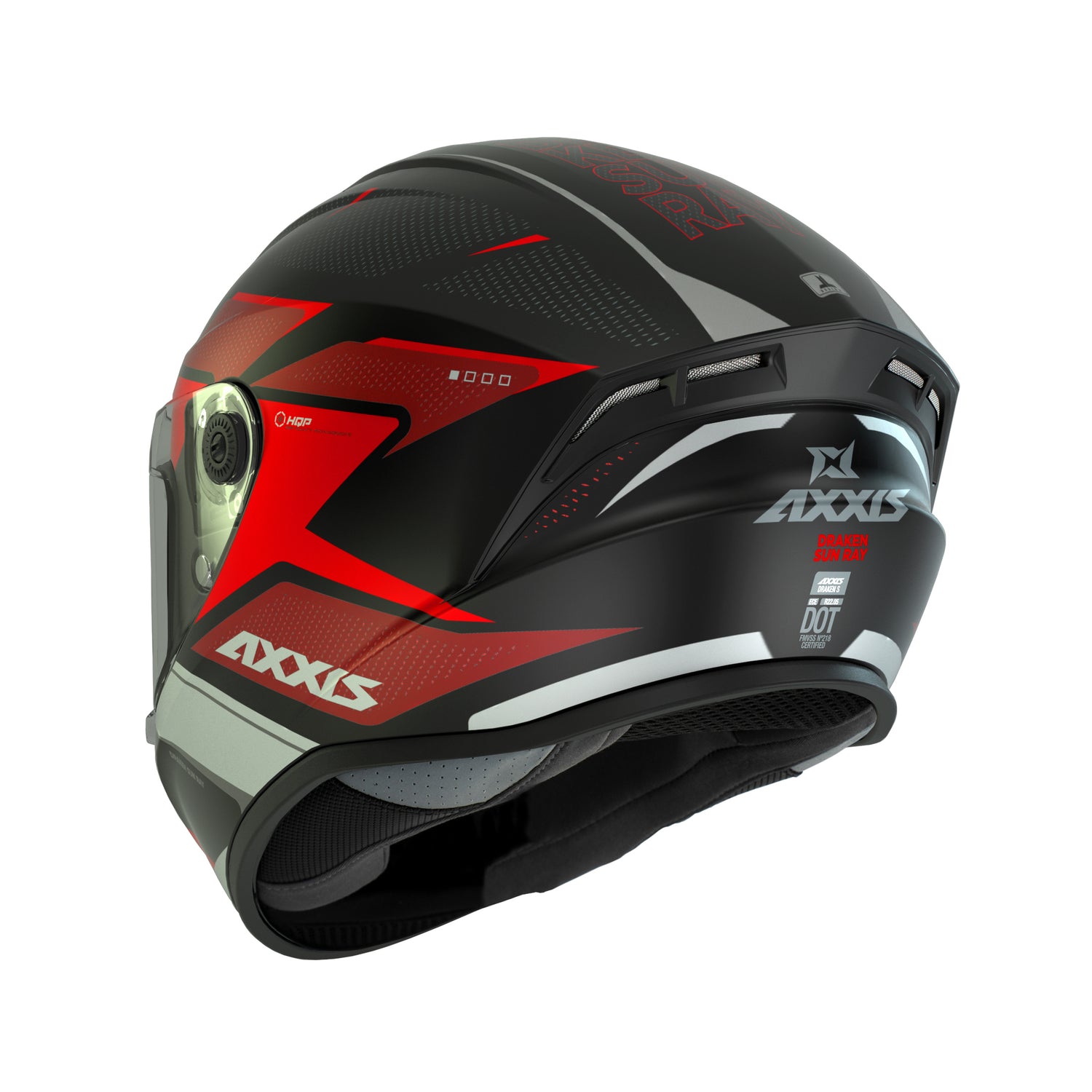 The Axxis Draken helmet has an ECE, DOT injected thermoplastic shell.