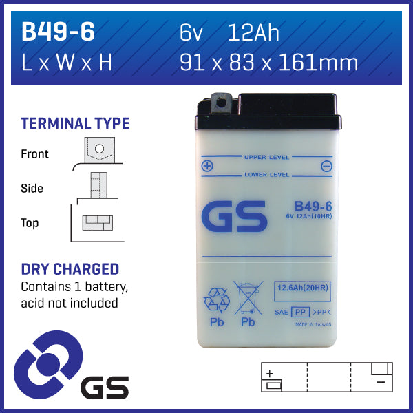 4210127Battery GS B49-6-6V - Dry Cell, No Acid Pack
