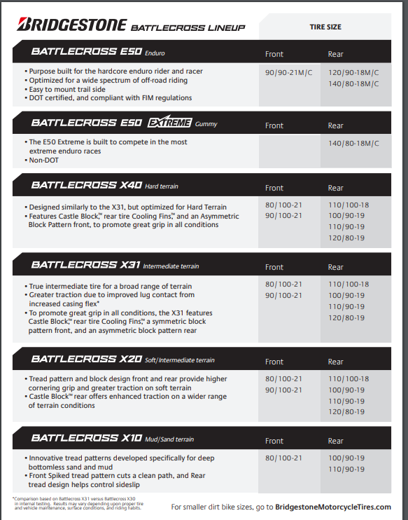 Bridgestone 110/90 -19 62M TT NHS X31 BATTLECROSS Motocross MX Rear Tyre