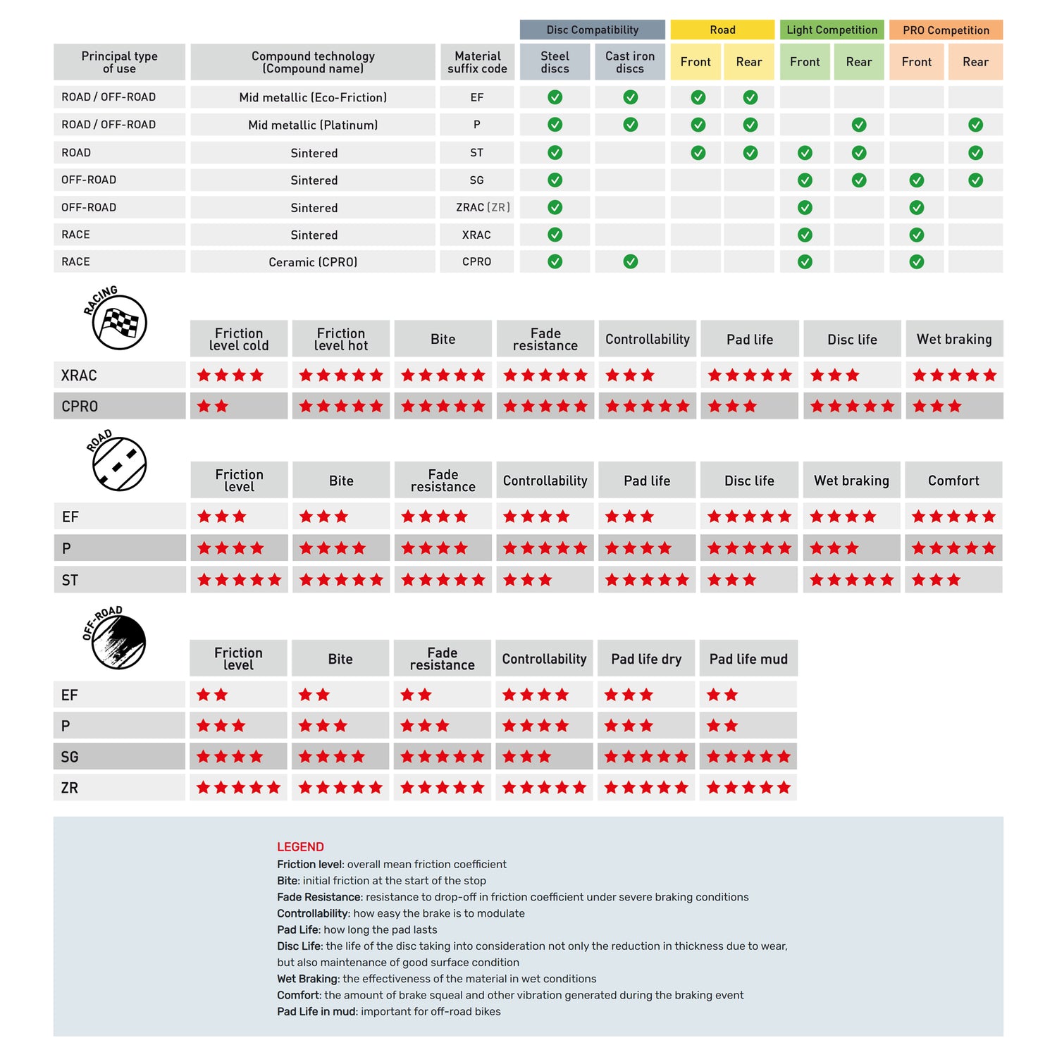 - Excellent pad life without causing elevated disc wear