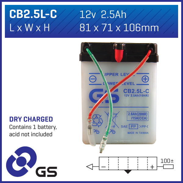 GS CB2.5L-C 12v Battery - Dry Cell, No Acid Pack