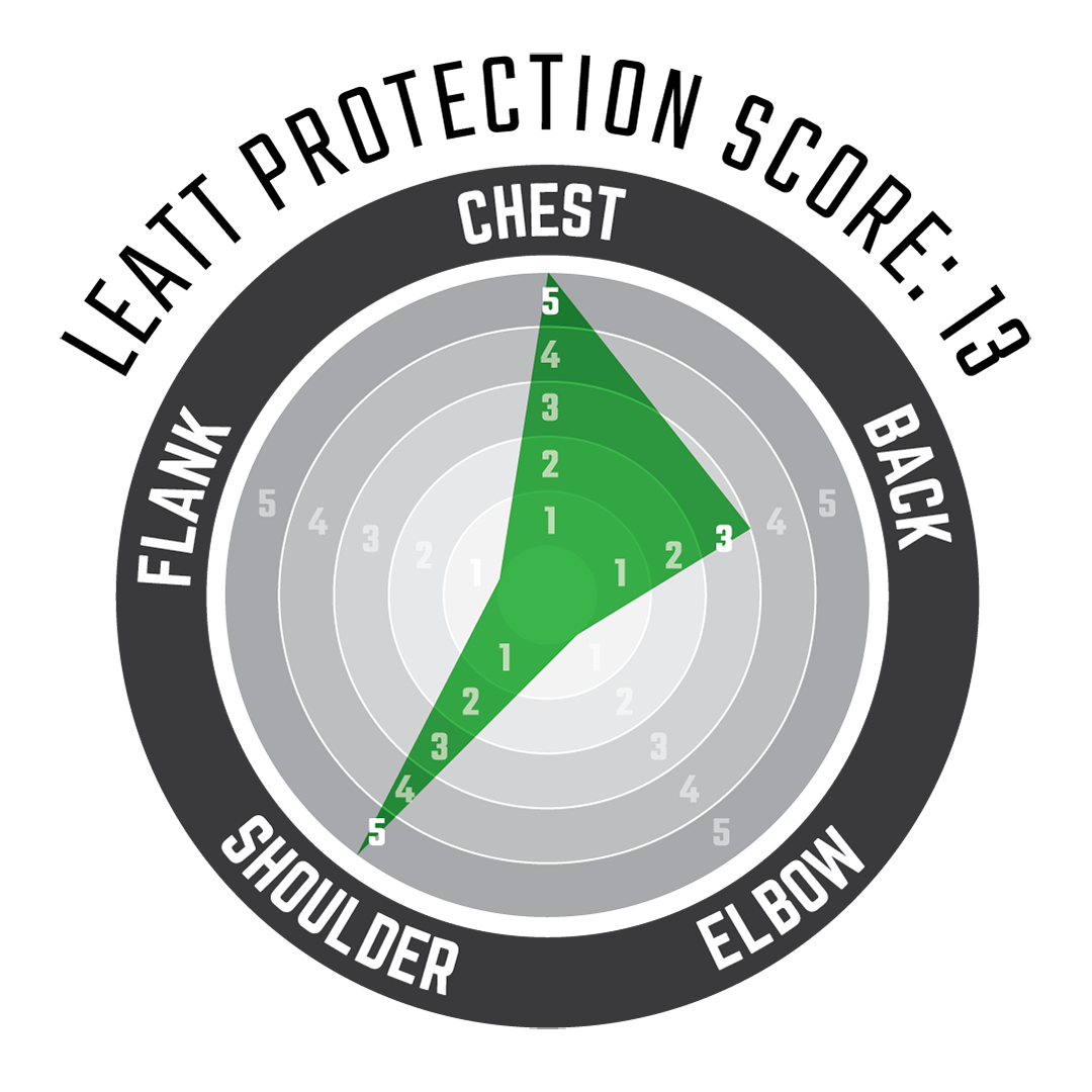 Sporting a 3D design with 53 ventilation slots, it is comfortable and has new, adjustable over-the-shoulder straps to ensure a secure fit. It is further compatible with Leatt neck braces and is now equipped with a mesh base layer. The 5.5 Body Protector is the next level of protection with a score of 25 points. Total Leatt protection score of 20 points