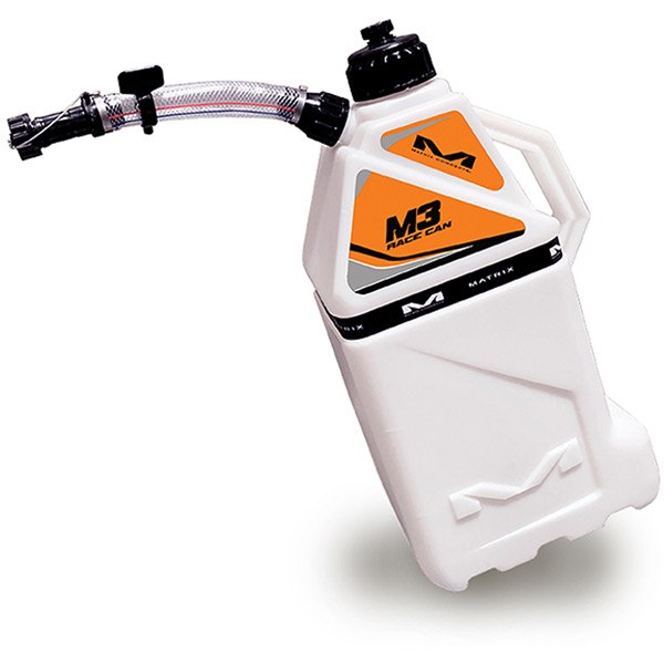 UMCM3106Matrix M3 Cans have been the can of choice for a number of years, with an an ergonomic and now familiar shape and design, the 4 Gallon M3 Fuel Can is easier to pour with its 2 handle system. The M3 Utility can is also a great companion for the A2 Stand, as well as the M64, A1 or C2x.Features:Comes complete with transportation cap and 6" long extender durable industrial delivery hose spout with 1.250 plastic fill reducer with cap.Overall dimensions: 22" X 9" X 8".3” extra wide fill cap or easy and quick filling.Strategically placed side handle and special unique bottom handle for balance and easy handling.Made from hi-quality HDPE plastic with heavy duty wall thickness.Reinforced ribbed bottom for extra strength.4.0 gallon capacity makes the weight of the can easy to handle.Utility Can includes an indent that allows the use of Matrix Concepts tie-downs to strap into place during transport.Exclusive “name and number panels” give you the ability to personalize it, giving it the custom factory look.ColourOrange