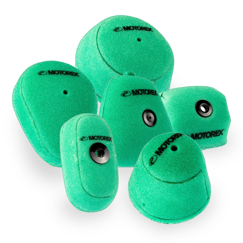 Pre-oiled foam air filter by MotorexWashable foam air filter pre-oiled with Motorexs Bio Power Air Filter Oil - itself developed by the firms racing lab - is fully submerged in the filter oil and massaged to ensure an even coat within the pores of the filter. To then allow the oil to completely cure it is placed in a temperature-controlled room and then sealed ready for install.- WASHABLE AND REUSABLE - Can also be cleaned using Motorexs Bio Dirt Remover