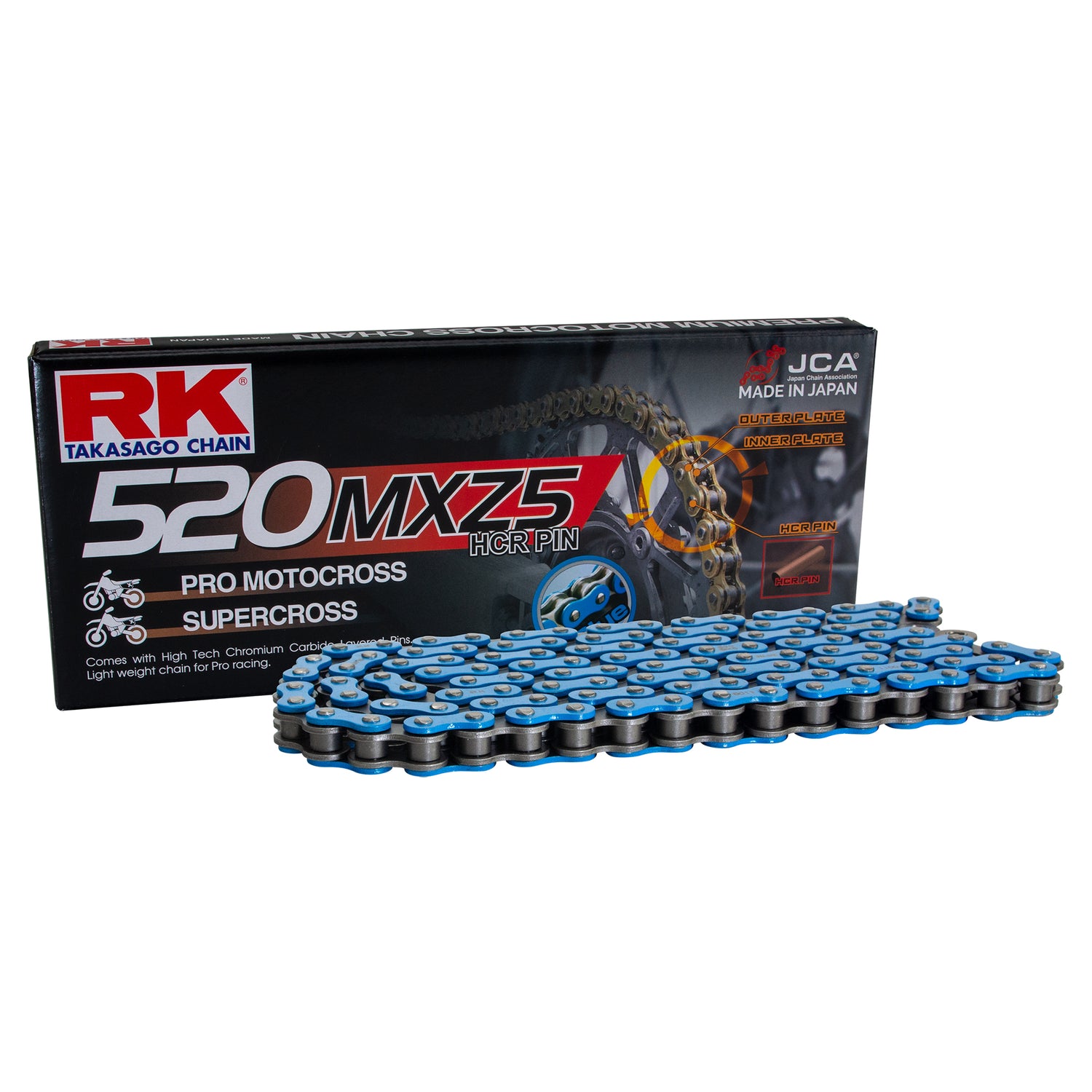 RK’s NEW MXZ5 Supercross Racing chains are made for the serious supercross and motocross racer. MXZ5 chains feature chromoly steel construction with seamless rollers and bushing.