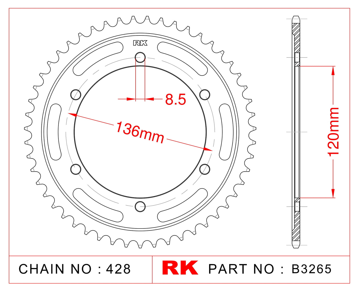 3420141Sprocket Rear RK-B3265-51 JTR1847 Afam 12313