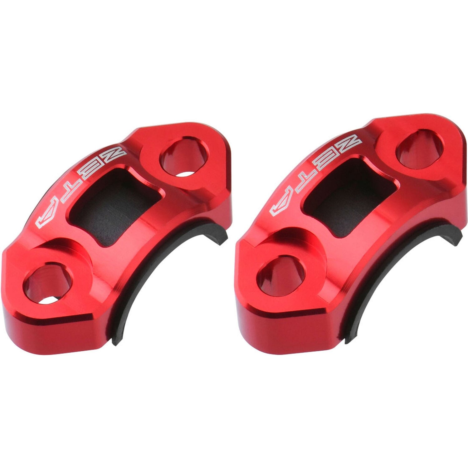 UDF409532Billet Rotating bar clamps for motorcycles. Set specifically for clutch and brake mounts.Features:Universal rotating bar clamp. Bolts onto your existing perch.Includes nylon sleeve to insert between the clamp and your bars allowing the perch to rotate upon impact.Made of A7009-T6 aluminum.Titanium-color, blue red and black anodized finish.Product TypeBar SparesColourRedSizeOne size