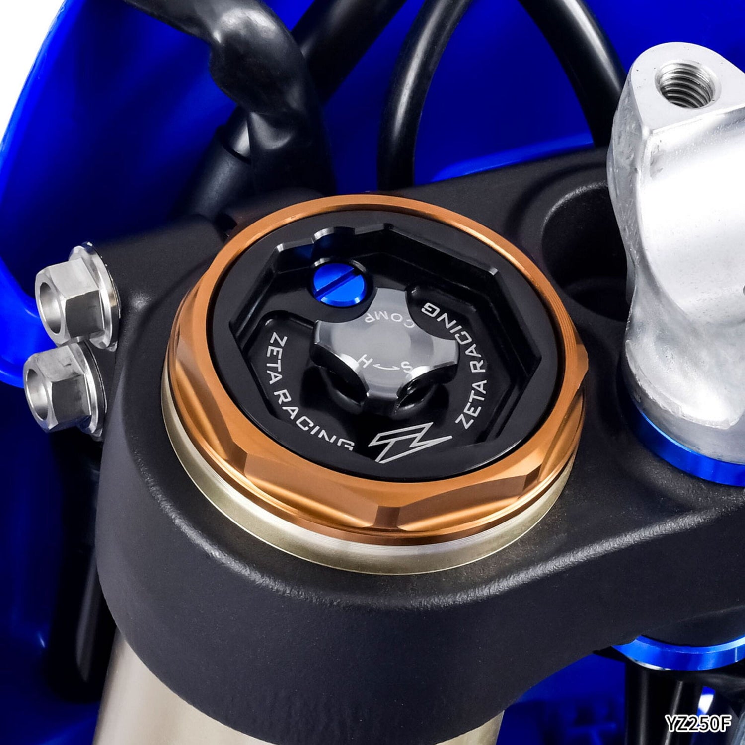 UDF5610200Zeta Fork caps are a must have if you run your bars in a forward position. On most bikes when the bar clamps are in the forward position getting a screwdriver in to adjust is almost impossible. These caps allow adjustment without the stress.