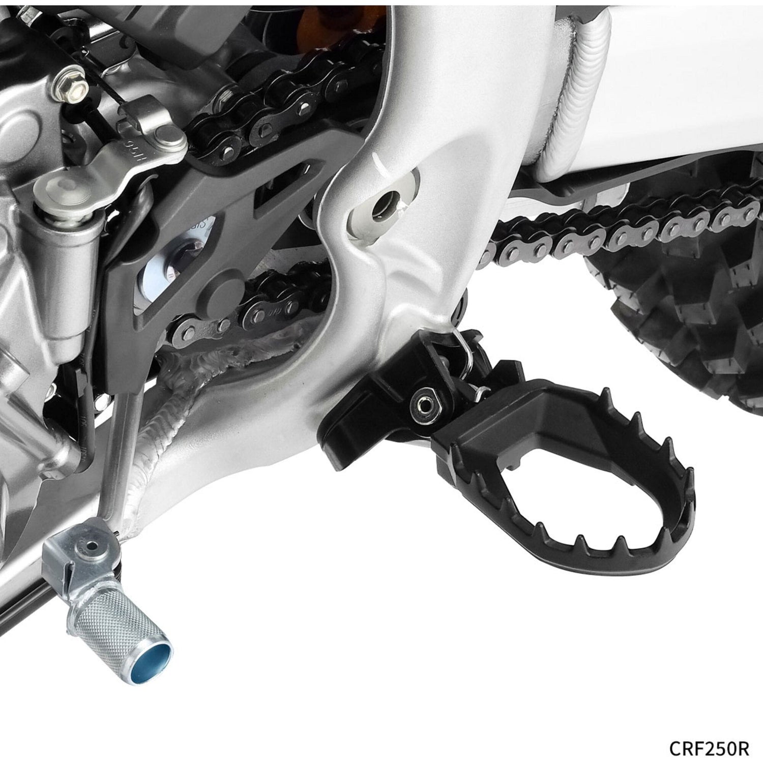 UDF932655Wide footpegs with an emphasis on non-clogging mud particularly gripping in muddy conditions. The central part is boldly hollowed out to ensure that it performs as much mud removal as possible, while also ensuring that it is strong enough, not to bend easily. The strength balance has been adjusted through repeated test drives by professional riders. The wide peg width of 60mm front to rear increases stability during standing and supports more aggressive riding