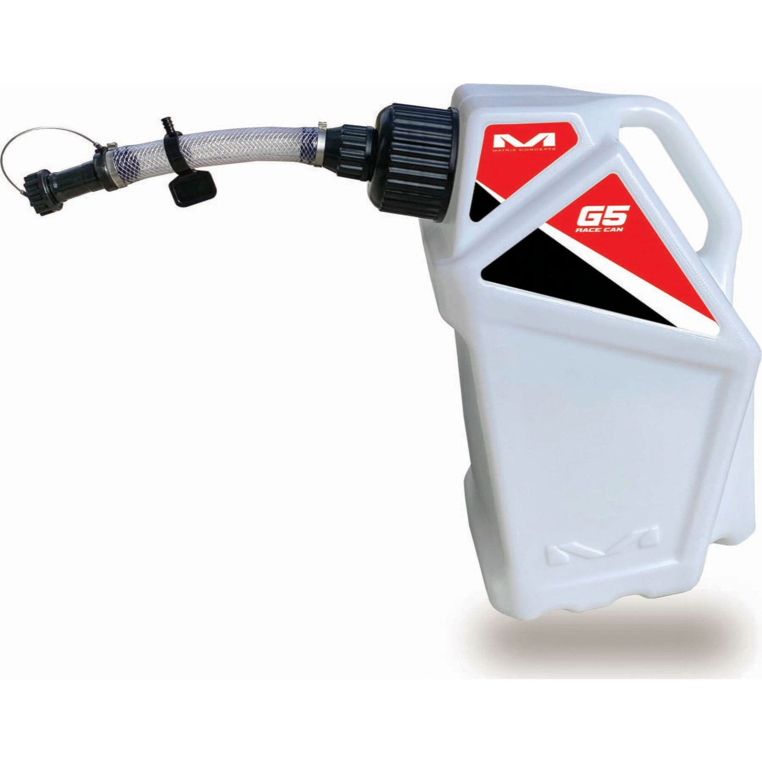 UMCG51022 years in development, the new G5 Equalizer is finally here. Our balanced design solves the current hard to use 5-Gallon can issue! With the all new patent pending hose delivery system design we completely eliminate the separate messy air venting hole, while featuring the all new dual flow angled EFDS (Easy Flow Delivery System) hose kit combined with a large fill cap. Durable extra thick walled, high-density polyethylene plastic, and stainless steel hose fasteners.With the all new patent pending hose delivery system design we completely eliminate the separate messy air venting hole, while featuring the all new dual flow angled EFDS (Easy Flow Delivery System) hose kit combined with a large fill cap. Durable extra thick walled, high-density polyethylene plastic, and stainless steel hose fasteners.Features:Comes complete with 8" long extender durable industrial delivery hose spout with 1.250 plastic fill reducer with cap.Overall dimensions: 20" X 9" X 9".3” extra wide fill cap or easy and quick filling.Strategically placed side handle and special unique bottom handle for balance and easy handling.Made from hi-quality HDPE plastic with heavy duty wall thickness.Reinforced ribbed bottom for extra strength.5.0 gallon capacity makes the weight of the can easy to handle.Exclusive “name and number panels” give you the ability to personalize it, giving it the custom factory look.ColourRed