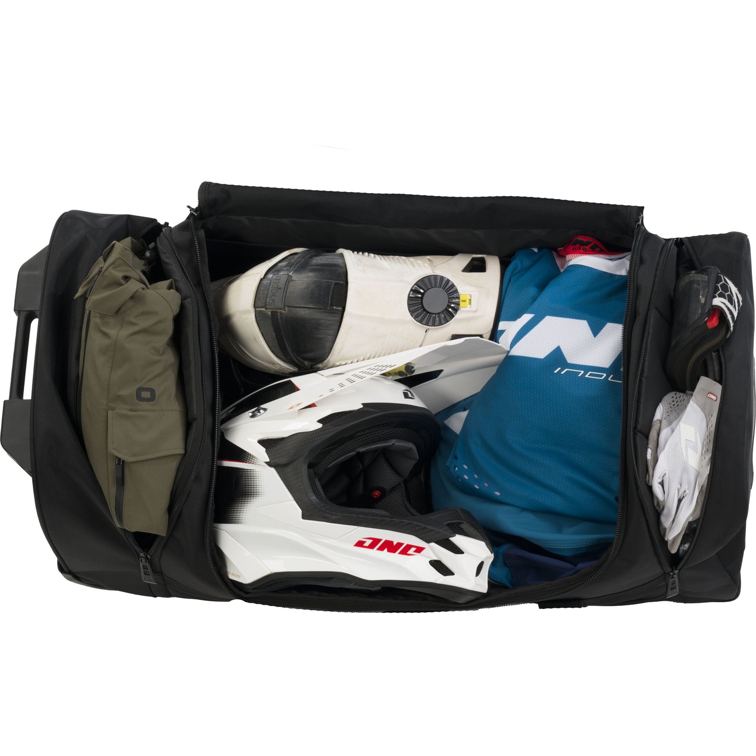 UOB100601The Crawler wheeled gear bag is built tough to endure the rigors of your outdoor adventures. Featuring a large top opening for easy access and a dedicated side pockets for other gear, it's full featured and value priced. The trolley handle allows you to wheel the bag to wherever you need to go. Additional storage under the lid helps keep your gear organized and clean.