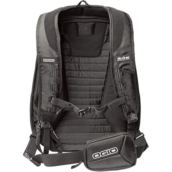- The OGIO Mach 5 Back Pack with No Drag Technology is the most comfortable, functional and aerodynamic riding pack on the market. Full of features such as a pocket for shoes, helmet carry strap and a fleece-lined electronics pocket, this backpack is constructed from shot moulded PU into a streamlined shape that resists buffeting at speed. The OGIO No Drag Mach 5 Backpack easily expands by means of a U-shaped zippered gusset
