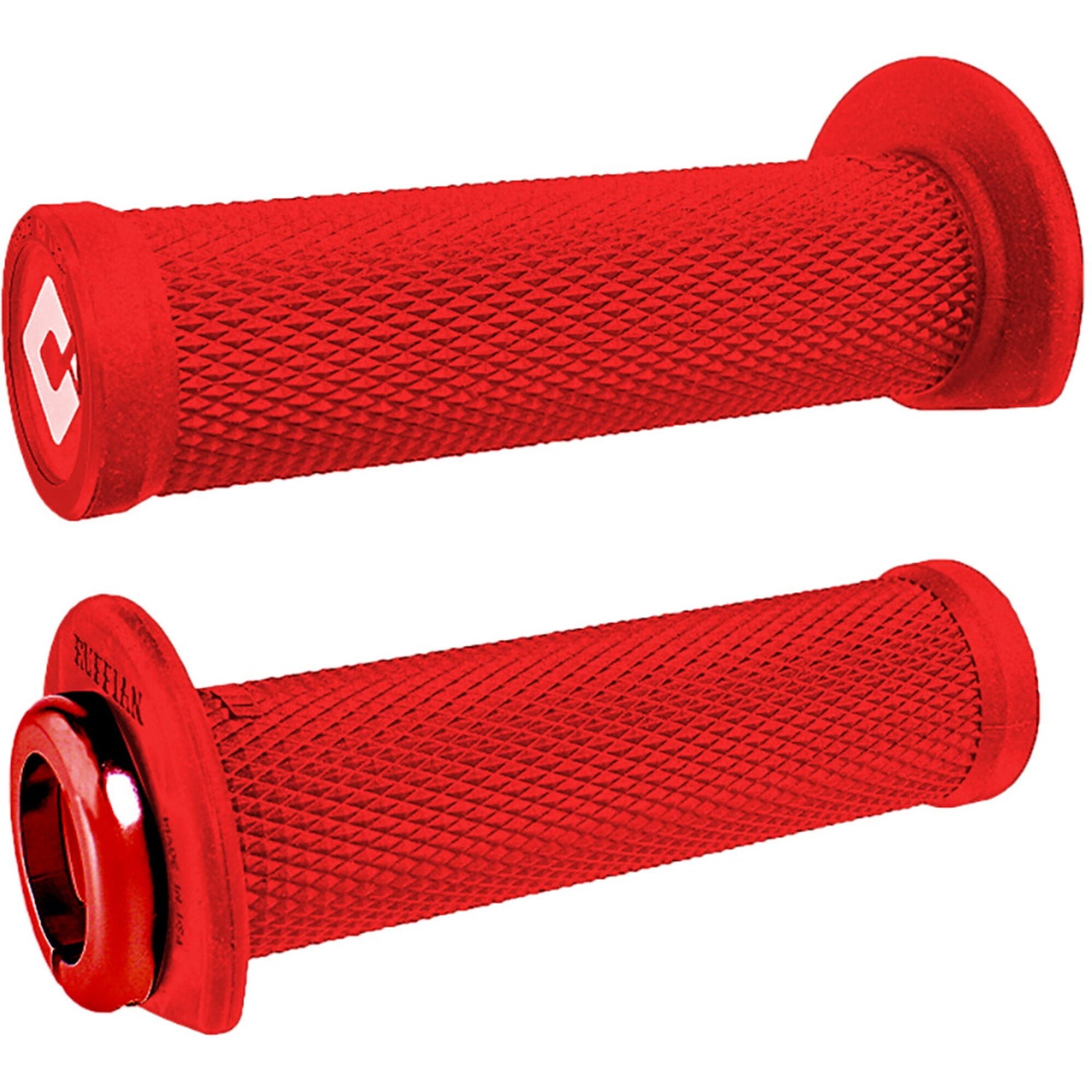 UODIJ33RFRRLow-profile grip delivering exceptional control designed specifically for racing. Specially developed for ATV and Watercraft use.Features:Slim (29.5mm) profile diameter for ultimate feedback for control.125mm Length, designed to only take up 120mm on the handlebar.Full Knurl, Diamondized pattern provides slim profile and excellent tractionExclusive 3/4 flange design protect hands and allows access to thumb-throttleMolded inner 1st pass for easy, knock-out-ends for full-wrap handguardsPreinstalled ODI V2.1 Lock-Jaw Single-Clamp with screws eases installationIncludes: Two (2) 7/8" I.D. Grips to fit onto 7/8" (22.225mm) Controls. MADE in USAProduct TypeThrottle CamsColourRedSizeOne sizeManufacturerBetaManufacturerGasGasManufacturerHondaManufacturerHusqvarnaManufacturerKawasakiManufacturerKTMModelRuffian